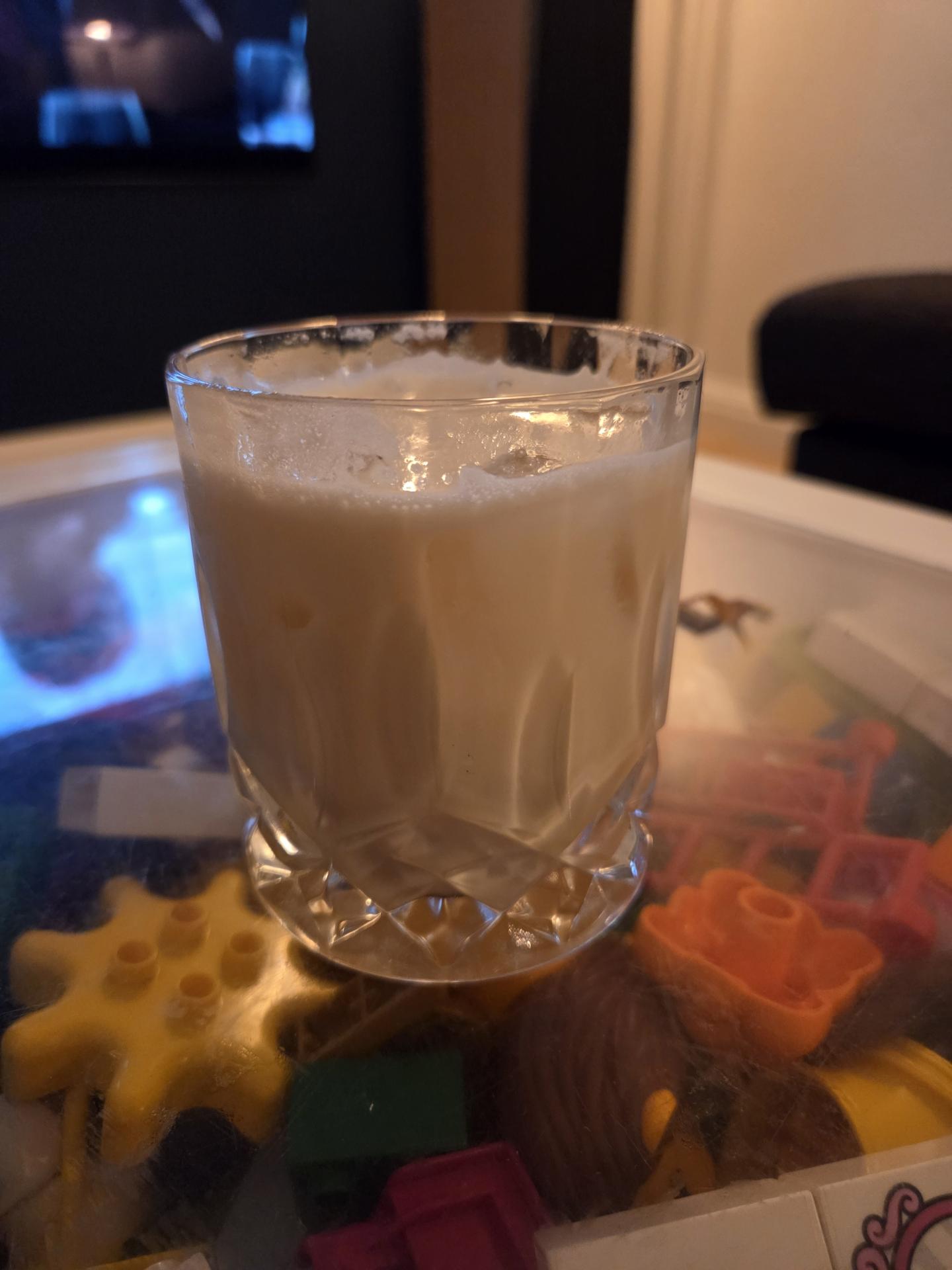 Kom alle ingredienserne i en blender sammen med 2-3 isterninger, og blend i ca. 10-15 sekunder.