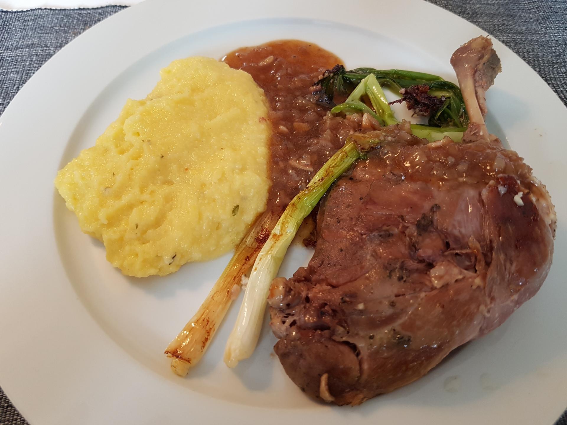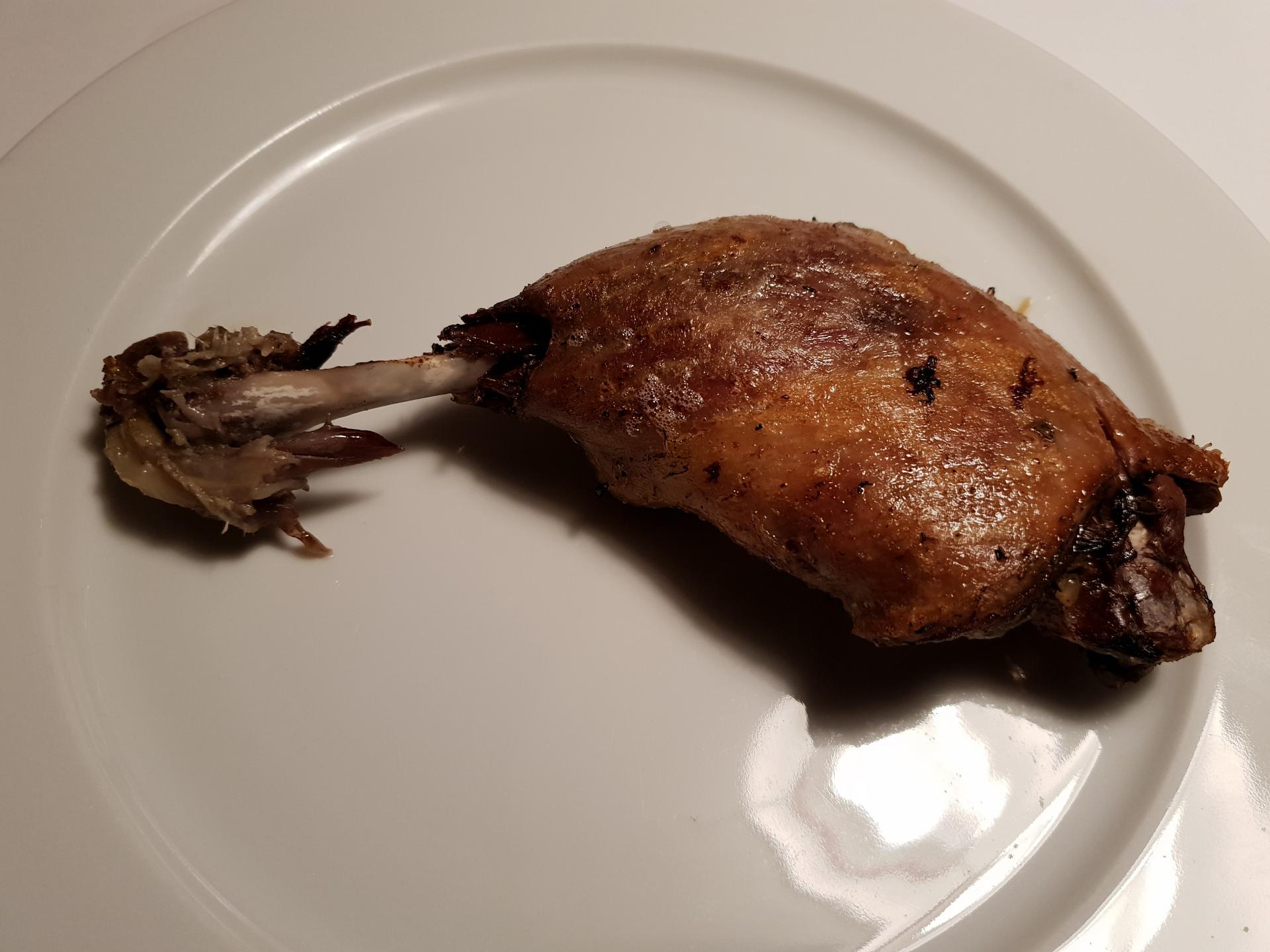 Fra køleskabet lunes andelårene i ovnen i ca. 30 minutter ved 200°C, til skindet er sprødt.