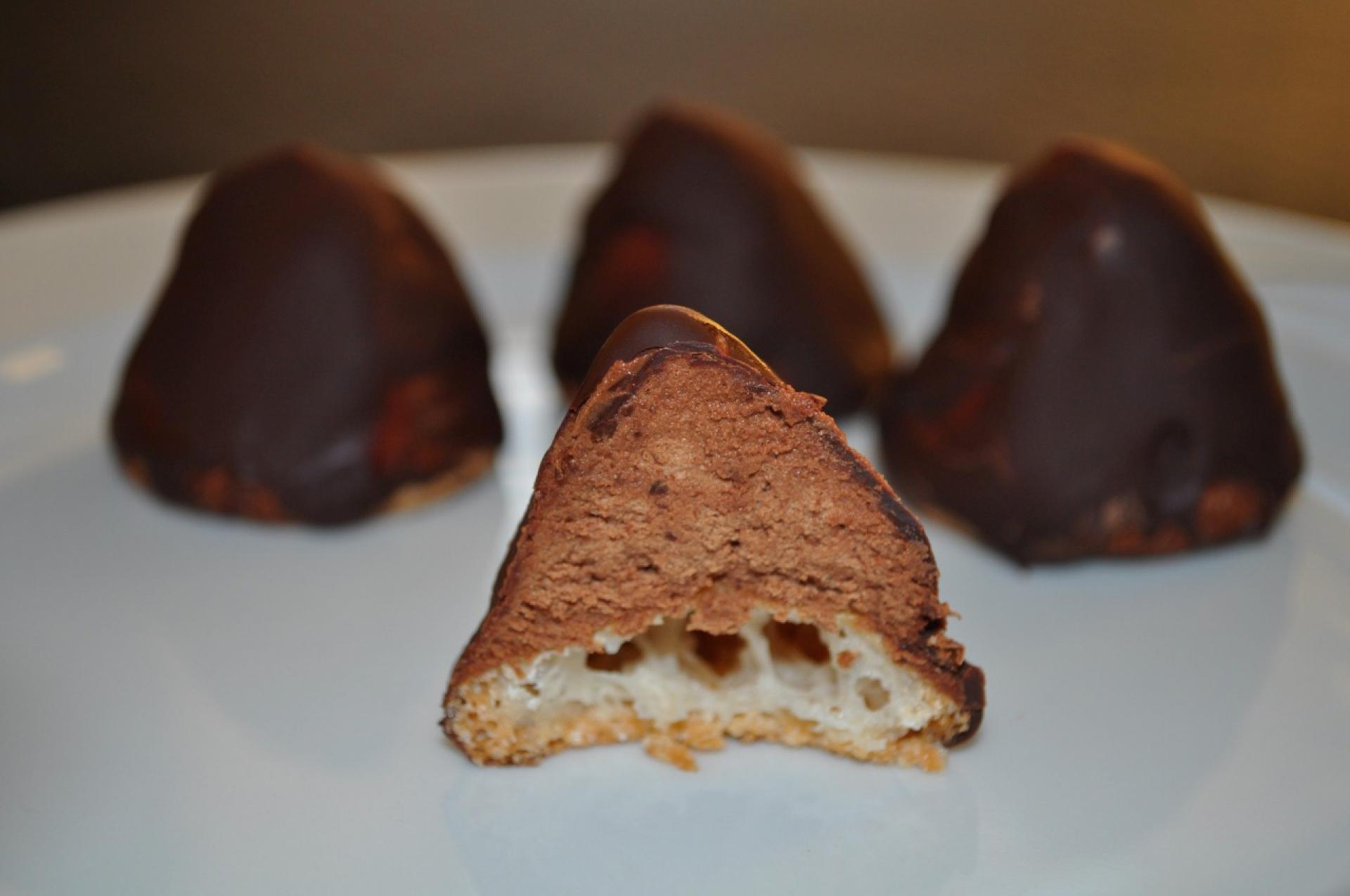 Overtrækkes med chokolade.