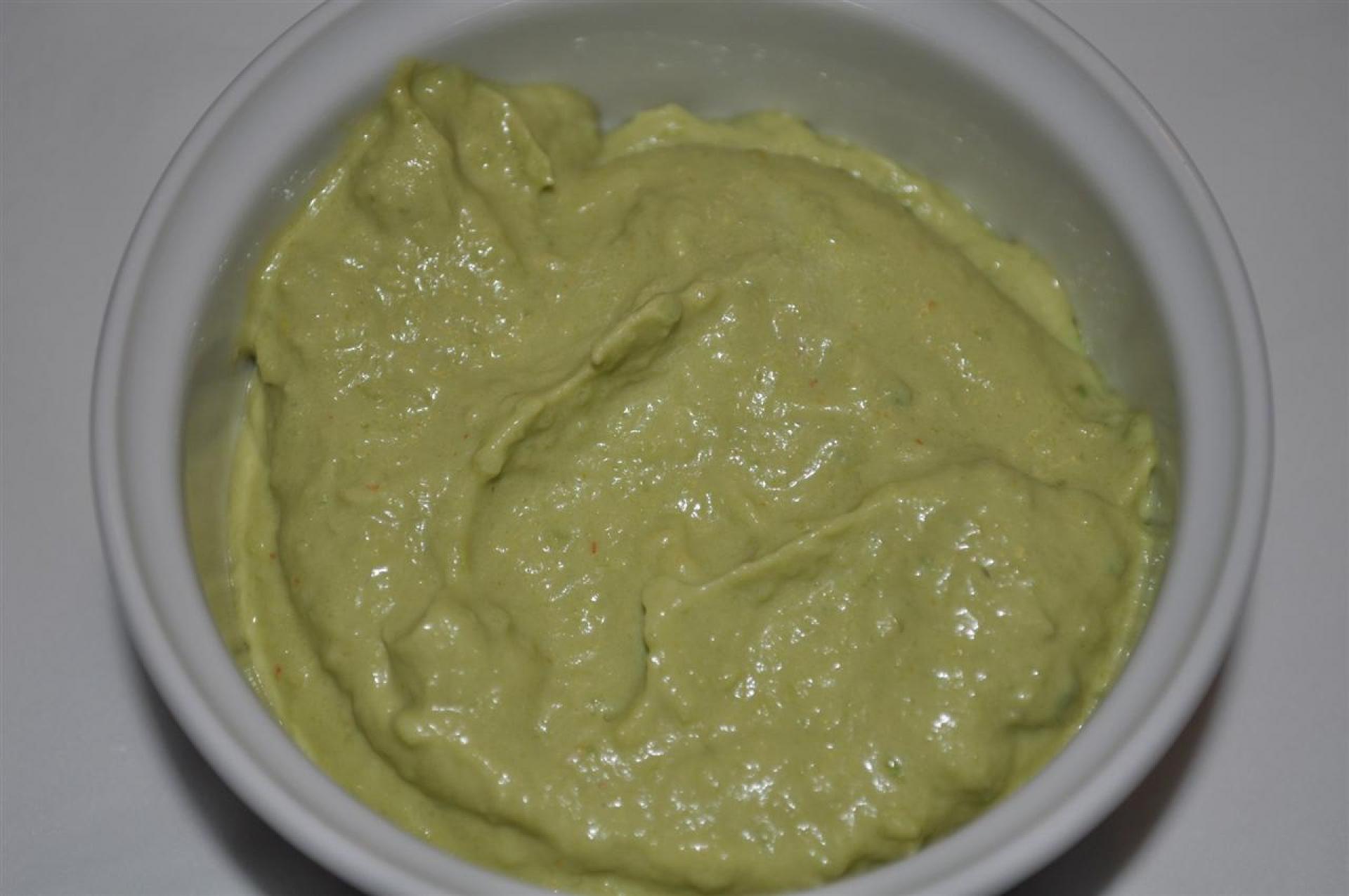 Blend avocado, hvidløg, citronsaft og salt til en fin mos. Herefter vendes cremefraichen i sammen med chilien (pulver eller finthakket frisk) og det hele smages til med yderligere chili, citronsaft og salt.