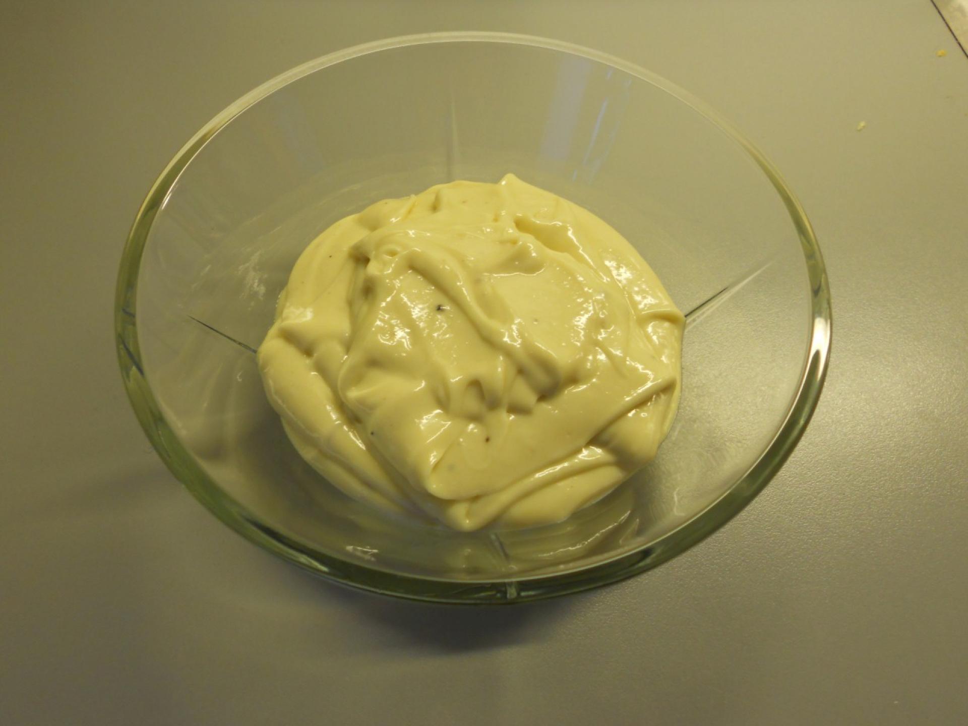 Sennep og æg piskes sammen med en håndmikser.