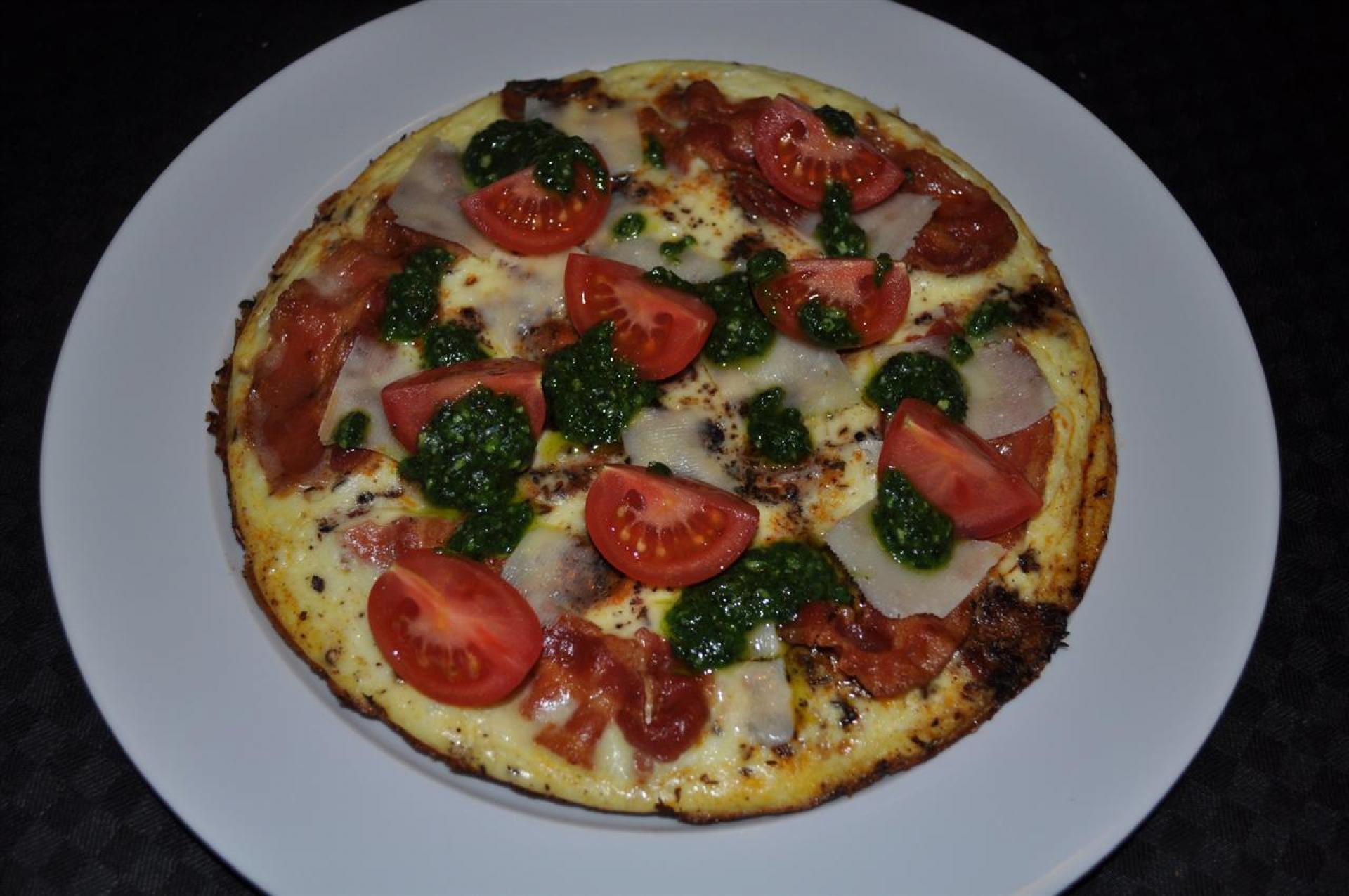 Omelet med bacon og pesto.