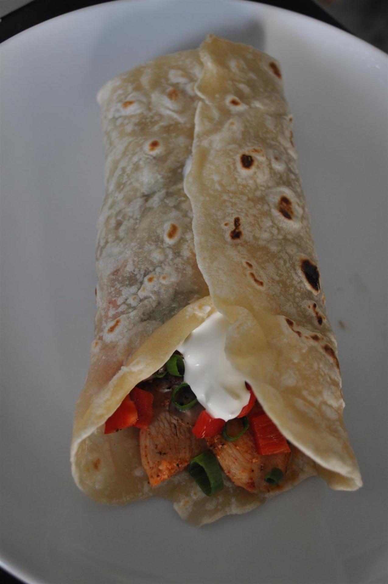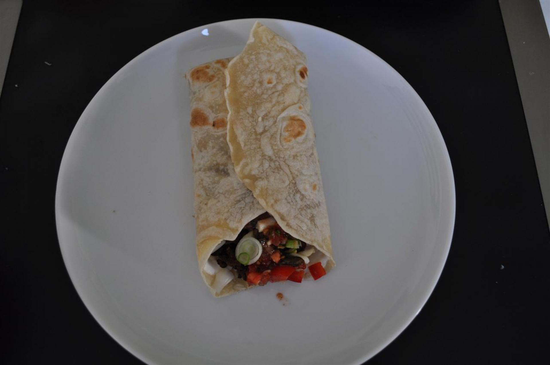 Kan serveres med grøntsager og kød efter egen smag, og gerne med lidt hjemmelavet salsa eller guacamole på toppen.